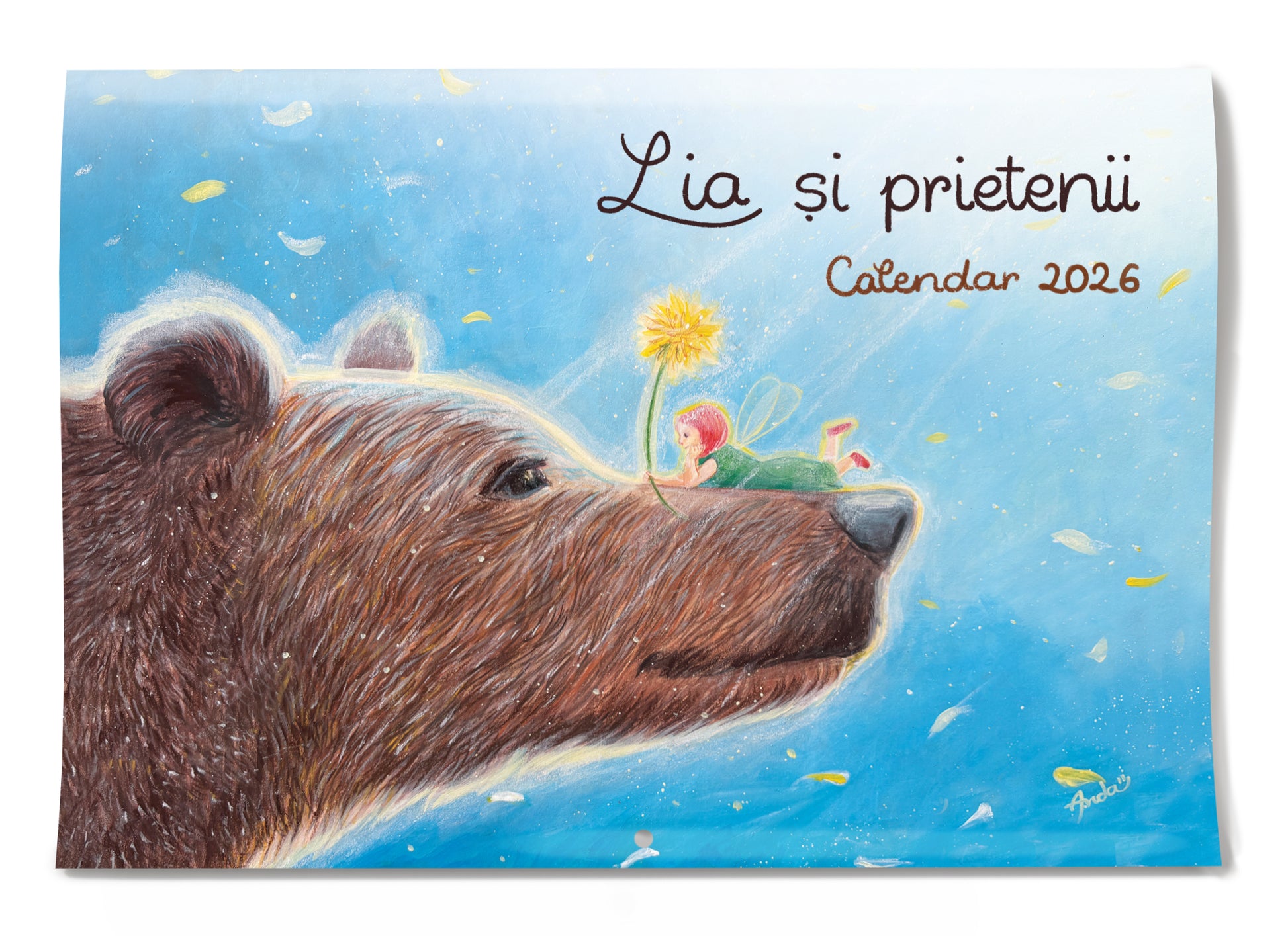 Calendar de perete pentru anul 2026, cu aventurile micuței zâne Lia printre anotimpuri, împreună cu prietenii ei din pădure.
